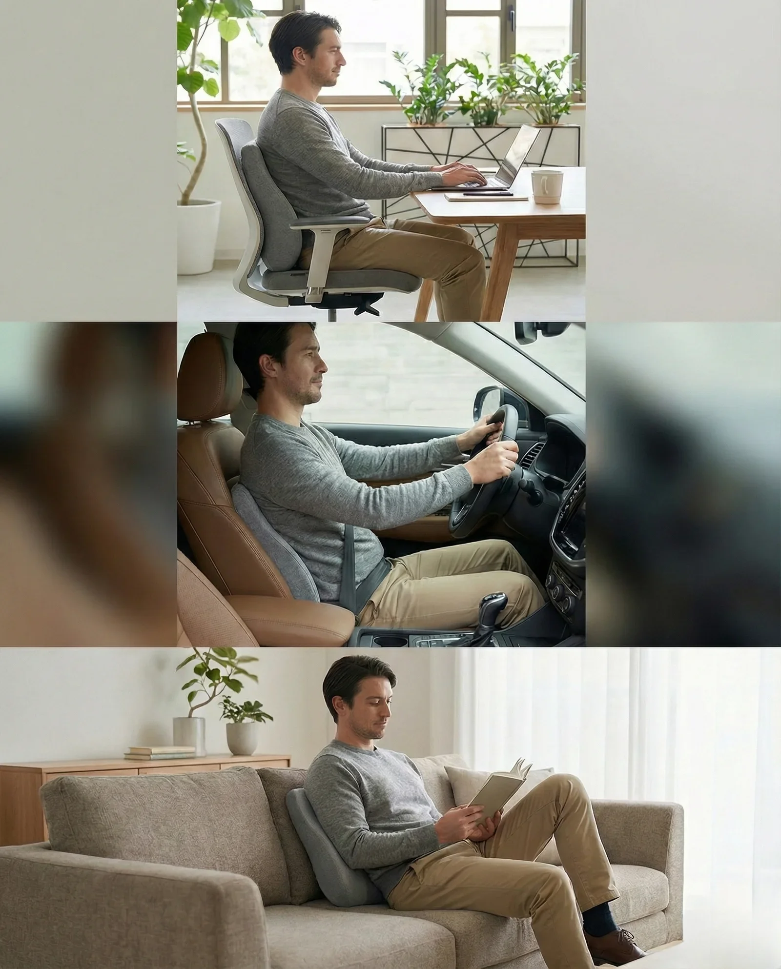 You could, but here’s the problem: Regular pillows aren’t designed for lumbar support. They’re too soft, too thick, or the wrong shape. They’ll flatten out, slide down, or push you too far forward in your seat—making your posture worse, not better. Our lumbar pillow is precisely engineered with: the exact curvature needed to support your spine’s natural lordotic curve, high-density memory foam that maintains its shape all day, and strategic thickness (not too much, not too little).
